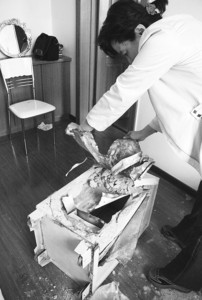 據(jù)房先生介紹,事發(fā)時(shí)休息室里共有兩臺(tái)保險(xiǎn)柜,另一臺(tái)保險(xiǎn)柜的背面也留有被撬過(guò)的痕跡,但由于該保險(xiǎn)柜比較堅(jiān)固才沒(méi)被小偷撬開(kāi)。房先生用被盜的保險(xiǎn)柜存放現(xiàn)金等常用物品,而用另外一臺(tái)保存房證、存折等。房先生告訴記者,被盜保險(xiǎn)柜內(nèi)除了有幾萬(wàn)元現(xiàn)金外,還有手機(jī)等其他貴重物品。“這個(gè)小偷太囂張了! ”房先生說(shuō),“我辦公室里放了不少酒,還有巧克力等食品,小偷開(kāi)了一瓶紅酒喝,而且吃了不少巧克力。 ”房先生認(rèn)為,大概是沒(méi)有工具打開(kāi)紅酒,小偷便在窗臺(tái)上敲碎了酒瓶口。記者看到辦公室的地面上依然留有玻璃碎片和已經(jīng)干透了的紅酒痕跡。