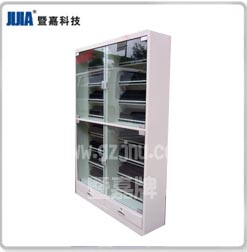 智能光盤(pán)柜 智能光盤(pán)柜就是在光盤(pán)柜的基礎(chǔ)上加安裝了單片機(jī)控制器,LED燈,通過(guò)計(jì)算機(jī)控制LED燈發(fā)光定位的光盤(pán)管理設(shè)備。通過(guò)專(zhuān)門(mén)的軟件進(jìn)行管理,并與電腦連接使用的光盤(pán)柜。此種光盤(pán)柜為現(xiàn)今光盤(pán)柜的發(fā)展趨勢(shì),眾多圖書(shū)館、檔案館都采用智能光盤(pán)存儲(chǔ)柜。