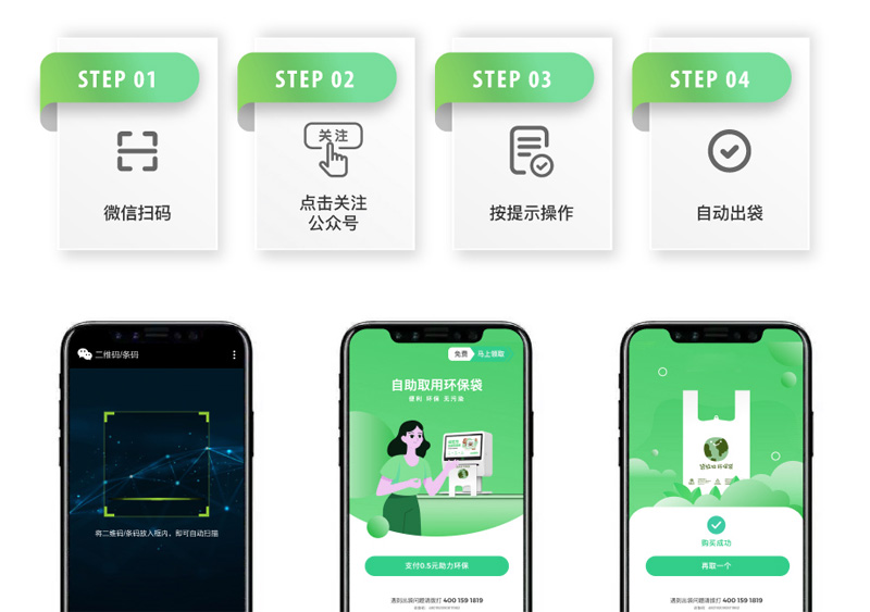 自助取袋機(jī)/環(huán)保袋發(fā)放機(jī)可以自助領(lǐng)取環(huán)保袋,居民可以免費(fèi)領(lǐng),操作和無(wú)人自助售貨機(jī)一樣的。拿出手機(jī)掃碼一下二維碼,機(jī)器自動(dòng)吐出環(huán)保袋。生活上對(duì)居民的出行提供了很大的便利,也通過(guò)免費(fèi)領(lǐng)的方式增強(qiáng)了人們生活中綠色出行、低碳環(huán)保的意識(shí)。大尺寸的觸摸屏和環(huán)保袋同時(shí)也是廣告載體,能夠?yàn)楦鱾(gè)區(qū)域商戶定制設(shè)計(jì)不同廣告,給人視覺(jué)感受。每一個(gè)機(jī)器和購(gòu)物袋在使用過(guò)程中相當(dāng)于人形廣告牌。
